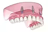 Les implants sont reliés par une barre qui assure la contention des piliers et la tenue de la prothèse. La prothèse est alors fixée sur cette barre. Le dentier comporte des attaches ou cavaliers qui viennent se clipser sur la barre.
